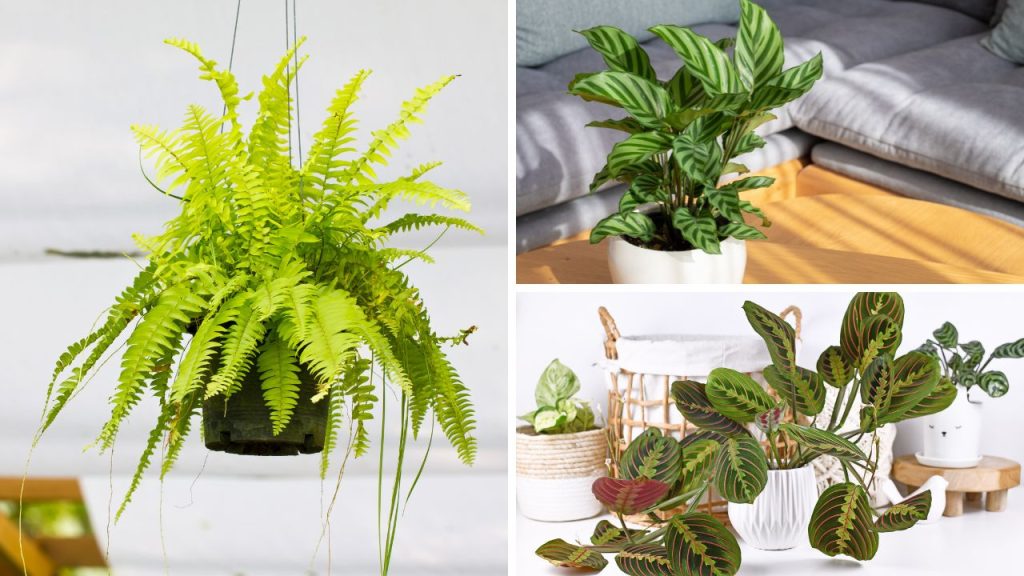 A maranta leuconeura, conhecida por suas folhas que “se movem” conforme o ciclo do dia, é outra excelente opção. Ela ama ambientes úmidos e cresce bem em meia-sombra, longe do sol direto, que pode danificar suas folhas delicadas.