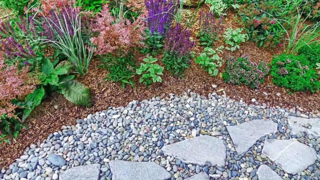 - Finalize com cascalho como cobertura para evitar respingos de terra e manter a umidade.