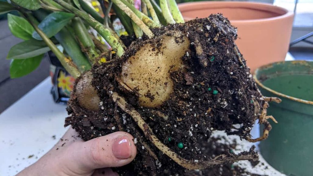 2. Retire a zamioculca do vaso antigo